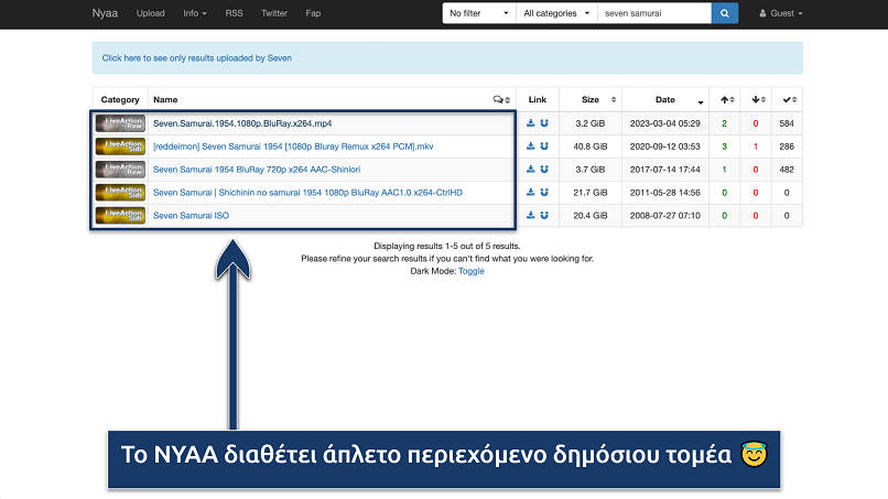 Σημείωση: Το NYAA δεν πρέπει να χρησιμοποιείται για τη λήψη πειρατικού ή παράνομου περιεχομένου.