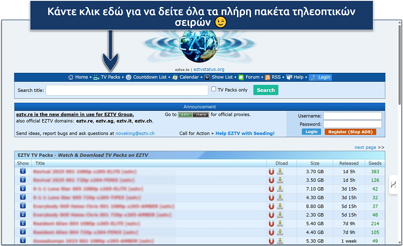 Σημείωση: Το EZTV δεν πρέπει να χρησιμοποιείται για τη λήψη πειρατικού ή παράνομου περιεχομένου.