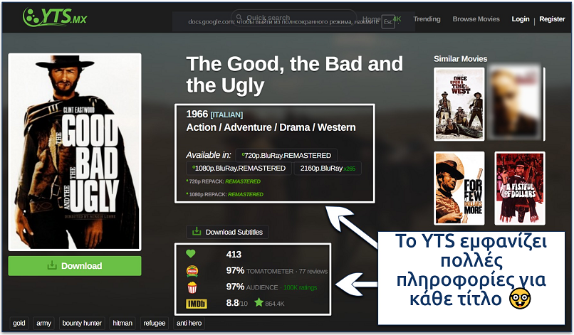 1. YTS — Καλύτερος ιστότοπος torrent για ταινίες υψηλής ποιότητας με μικρό μέγεθος αρχείων